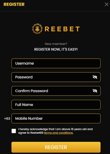 Begin your adventure at REEBET CASINO by hitting the "PLAY NOW" button at the top of this page. This action directs you to our registration page, where you can set up your unique username and secure password, kicking off your thrilling experience with us.